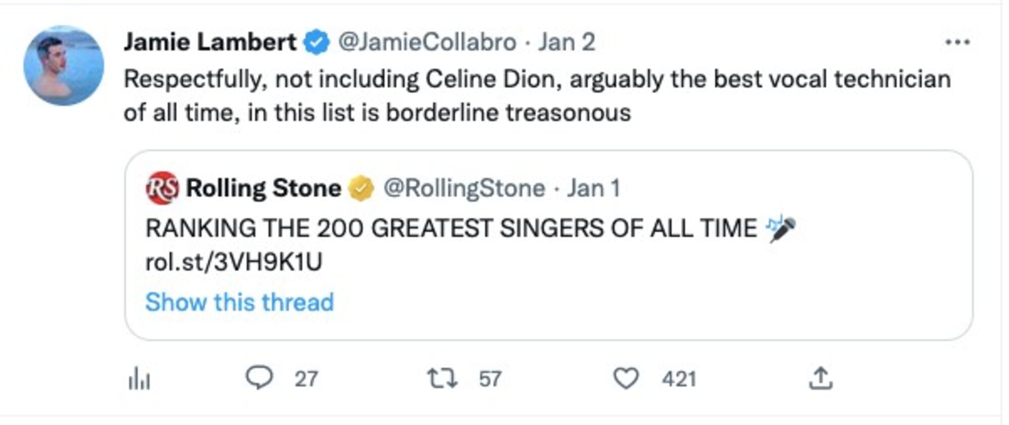 Magazín Rolling Stone nezaradil Céline Dion do zoznamu 200 najlepších spevákov sveta. Fanúšikovia sa búria