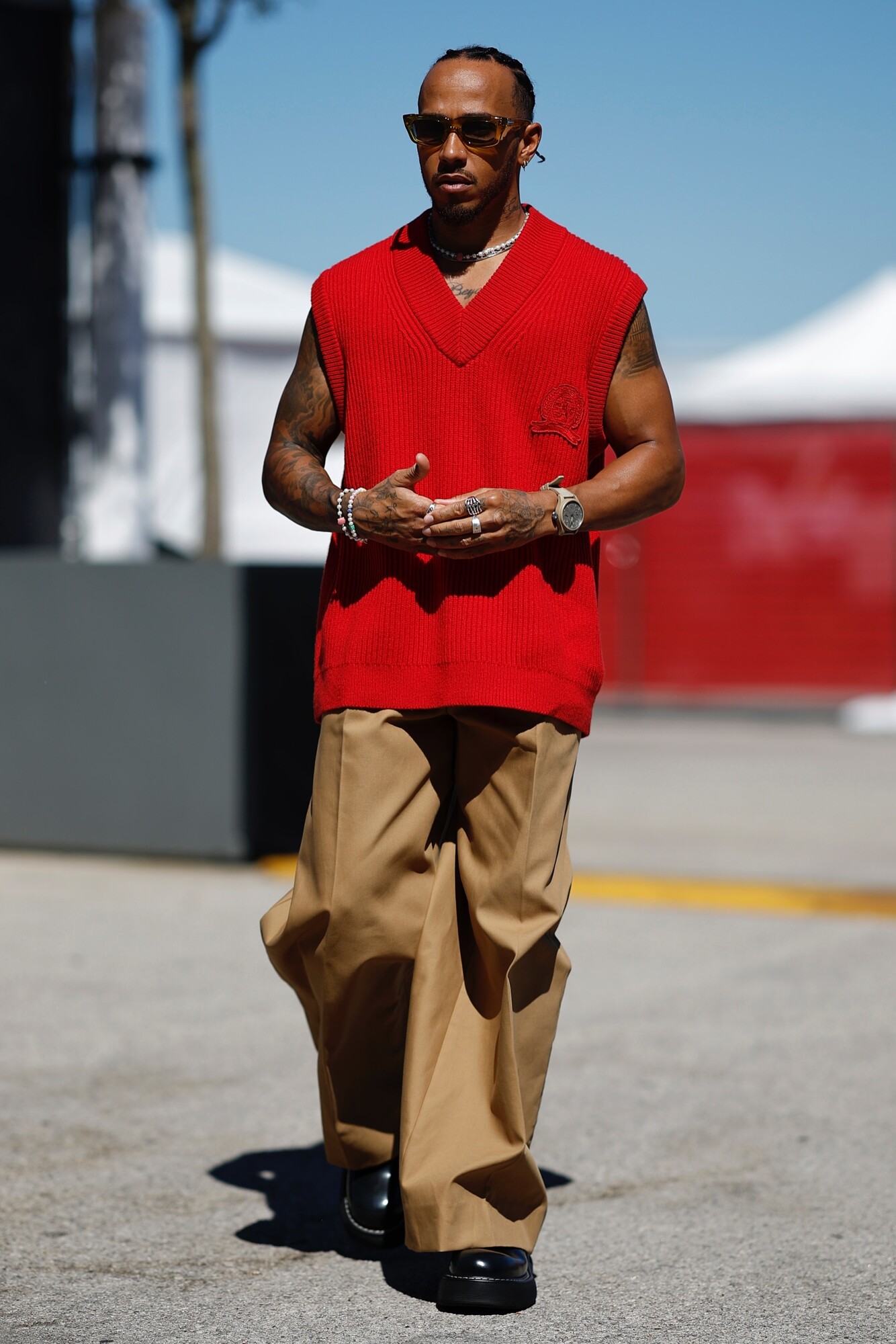 Cargo nohavice s rovnakým abstraktným motívom z dielní Louis Vuitton sú dostupné za cenu 1 600 eur.