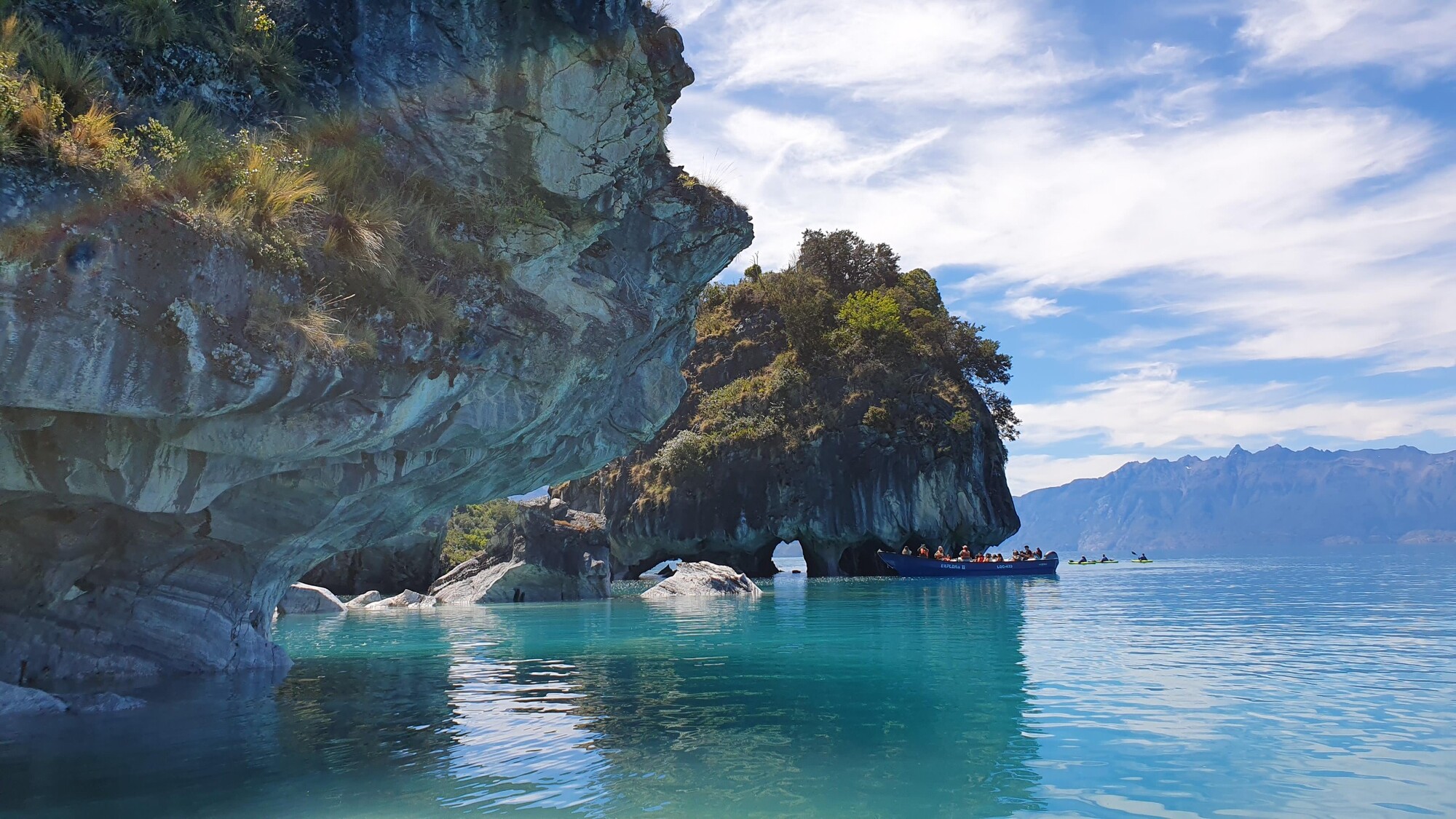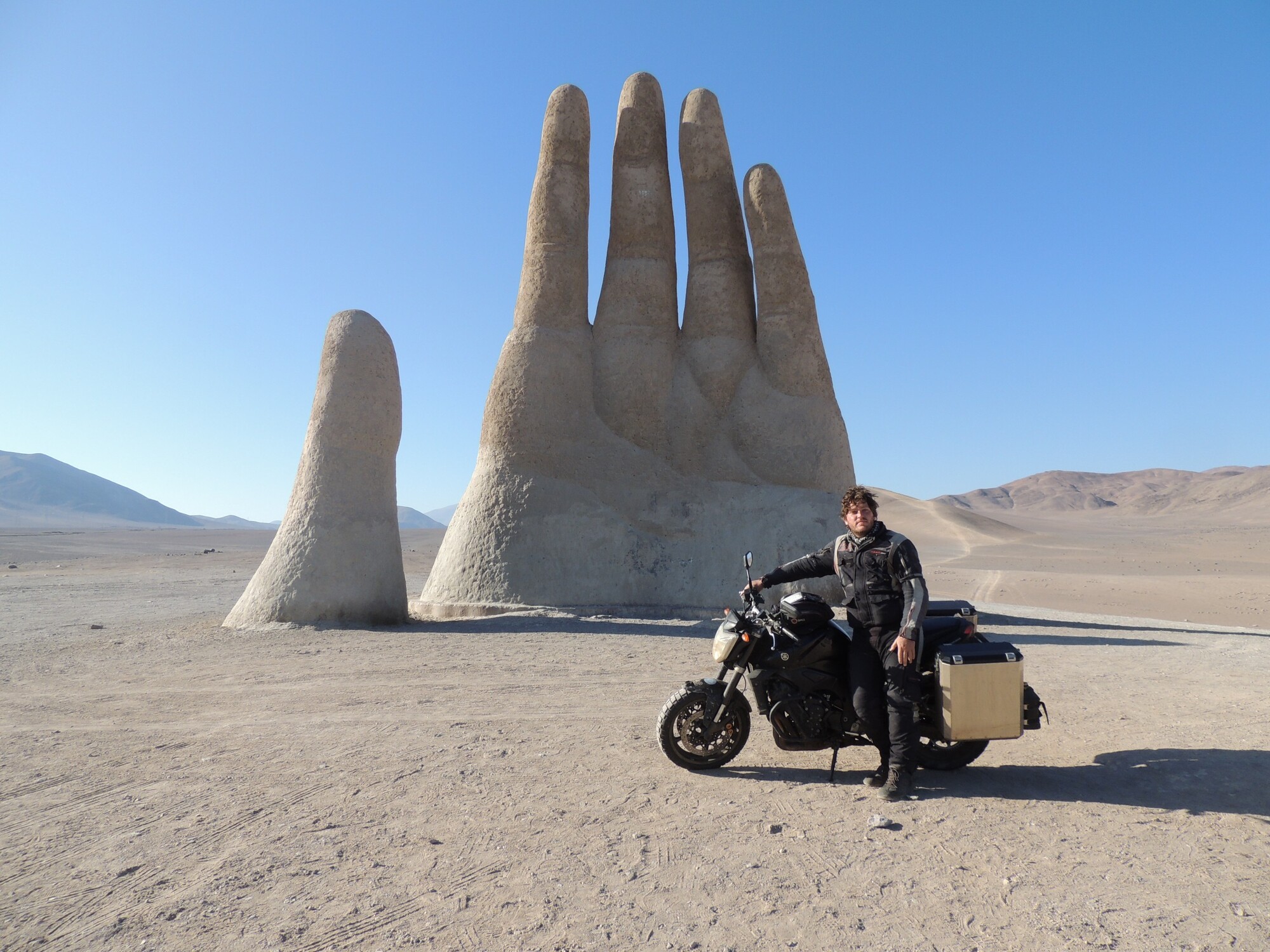 Niki a Boris na potulkách motorkou. Na fotke sú Mramorové útesy v Čile.