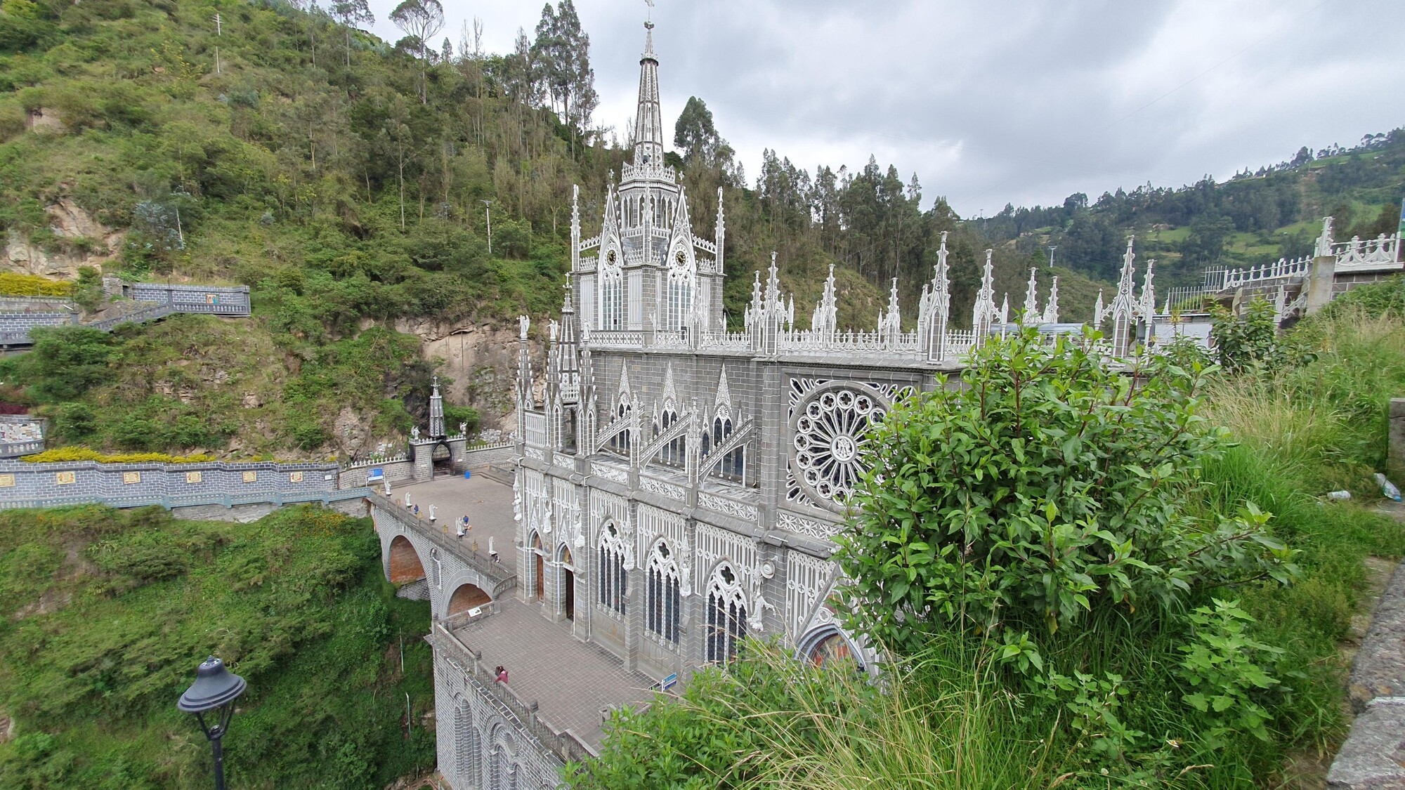 Niki a Boris na potulkách motorkou. Na fotke je Katedrála Las Lajas.