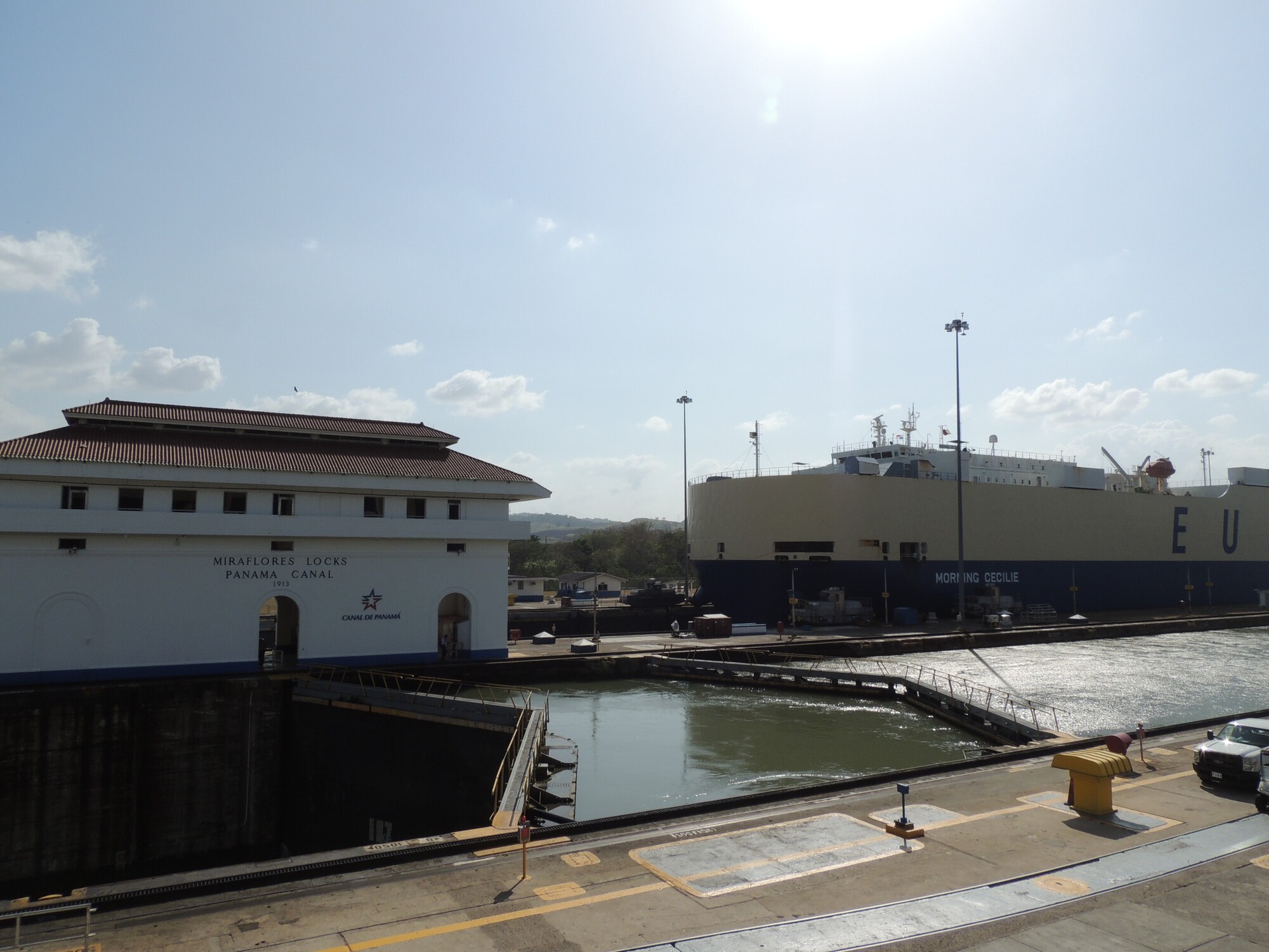Niki a Boris na potulkách motorkou. Na fotke je Panamský prieplav.
