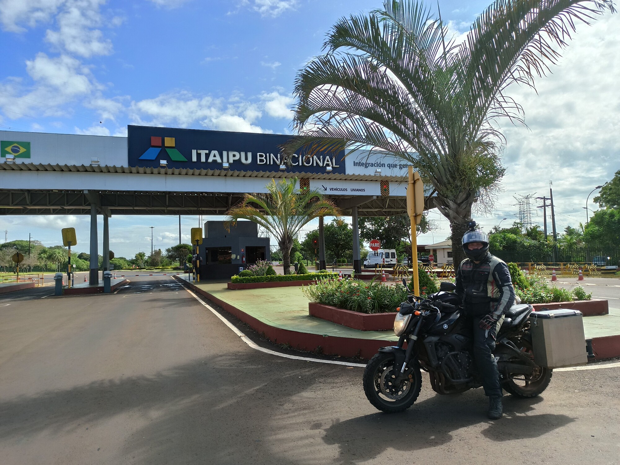 Niki a Boris na potulkách motorkou. Na fotke je priehrada a vodná elektráreň Itaipú v Paraguaji.