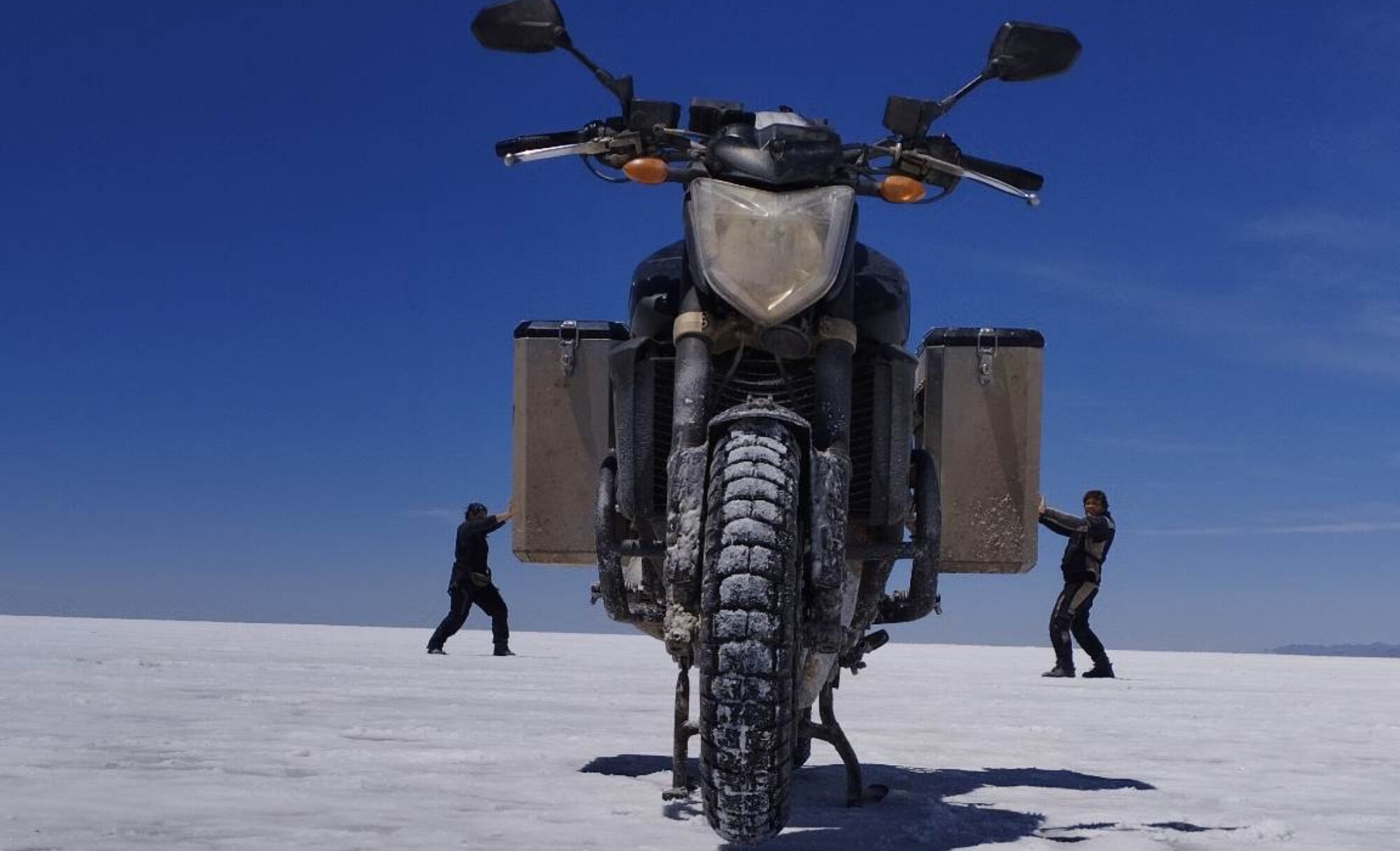 Niki a Boris prešli motorkou aj cez soľnú pláň Salar de Uyuni v Bolívii.