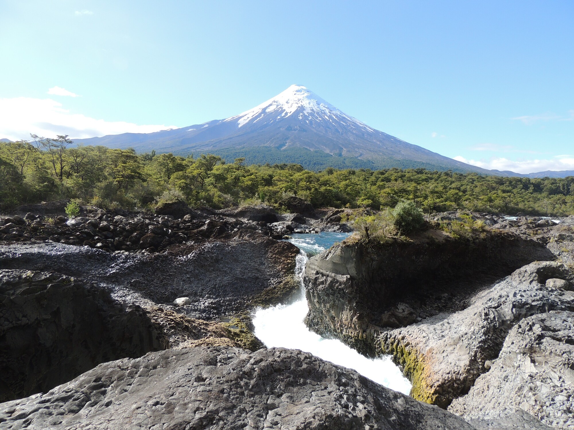 Niki a Boris na potulkách motorkou. Na fotke je sopka Osorno v Čile.