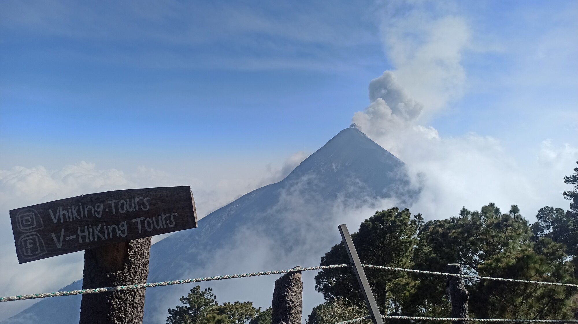 Niki a Boris na potulkách motorkou. Na fotke je sopka El Fuego v Guatemale.