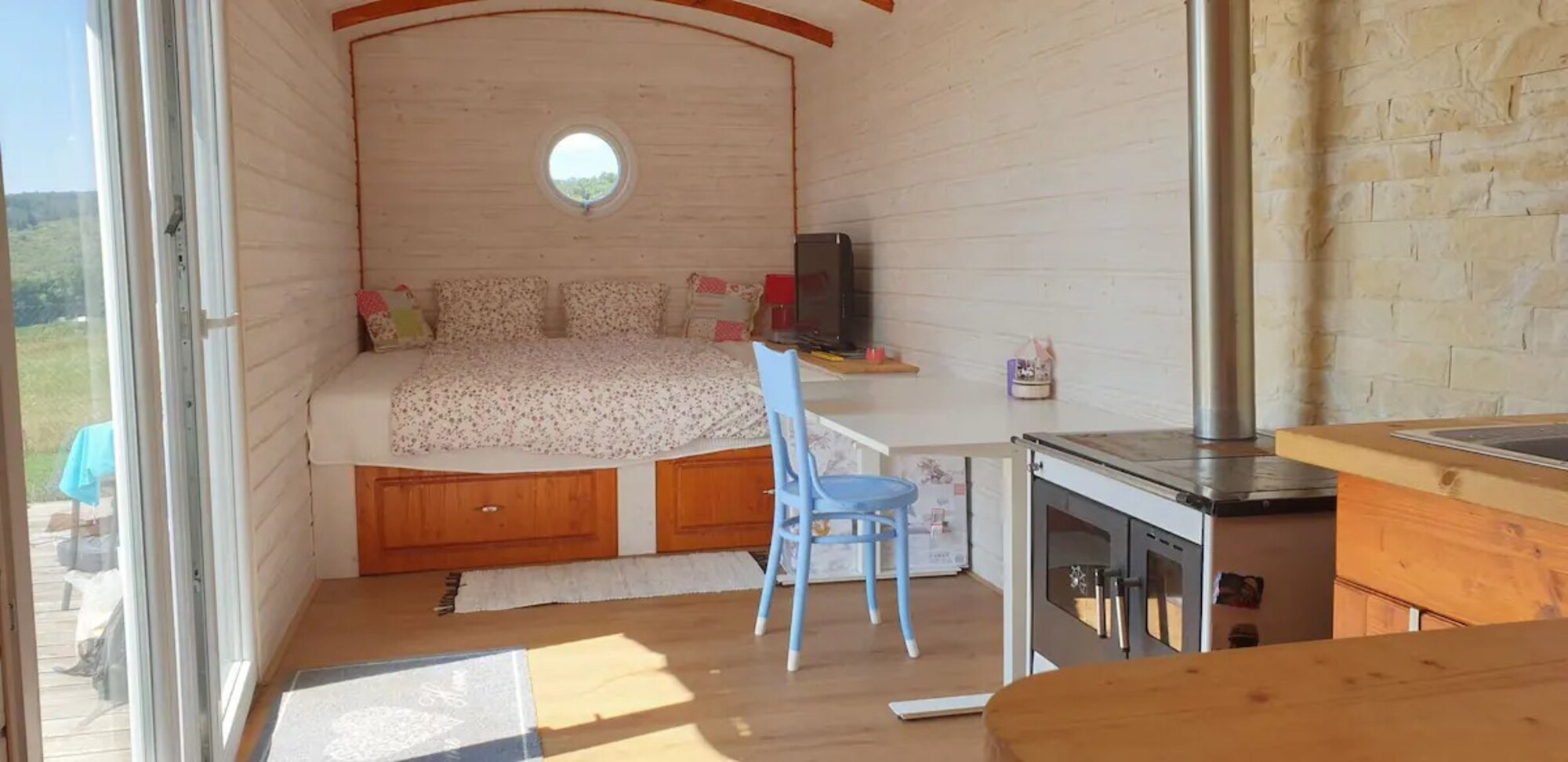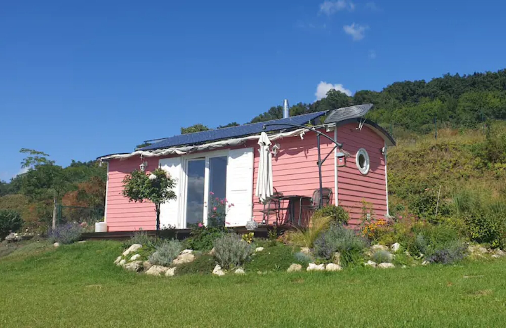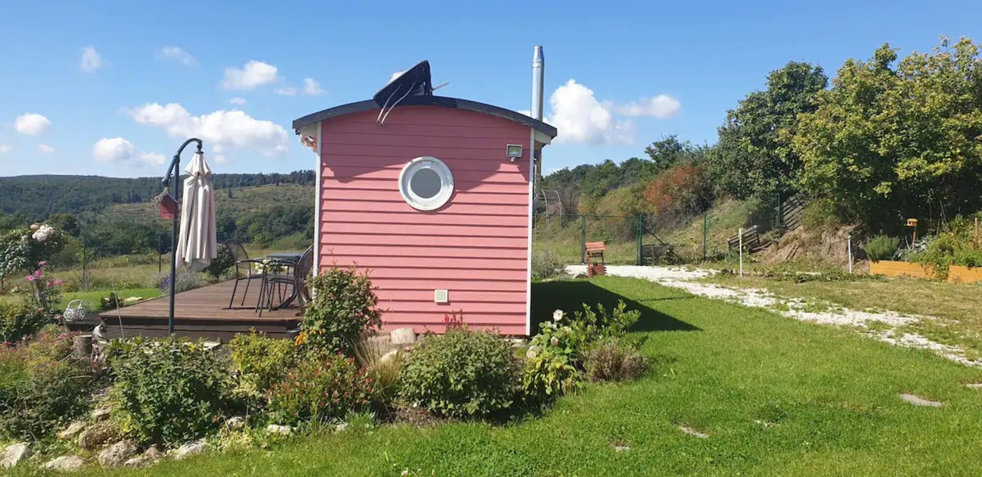 K ružovej maringotke prislúcha aj biozáhrada, z ktorej si môžu hostia odtrhnúť čerstvé plody.
