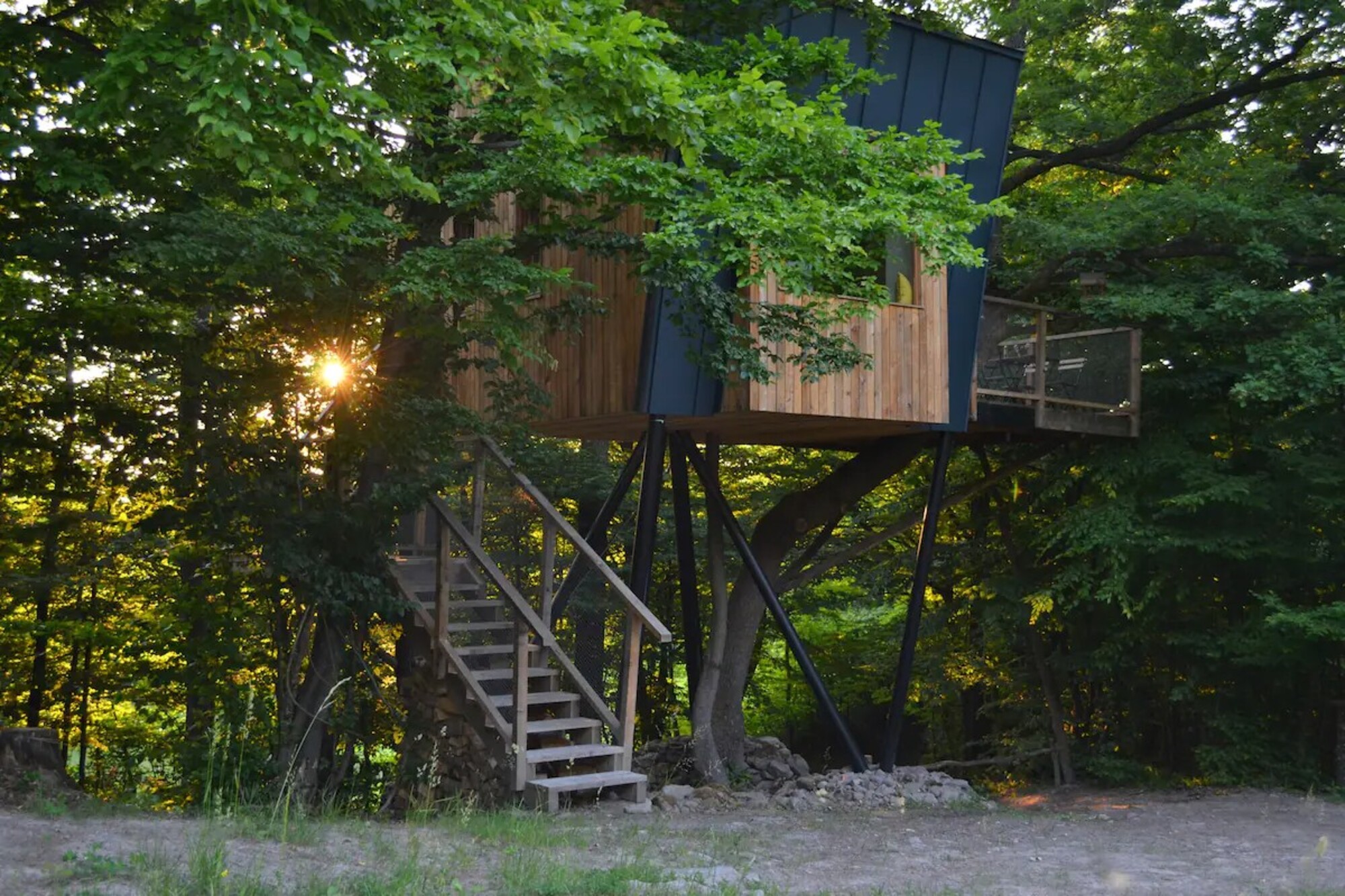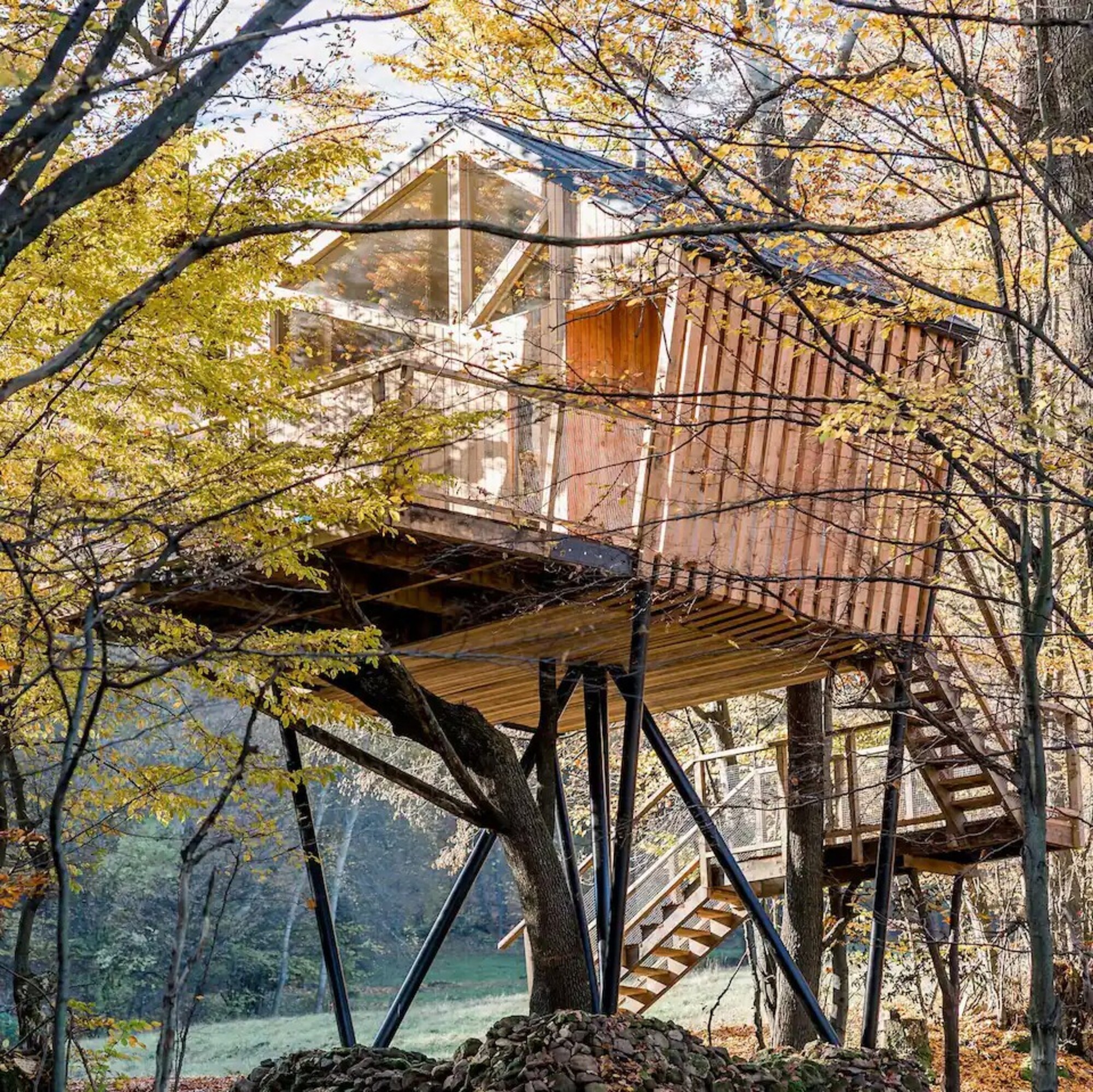 Dom na strome Dva Duby je dvojpodlažná chatka priamo v korunách stromov, ktorá poskytuje dokonalý kontakt s prírodou.