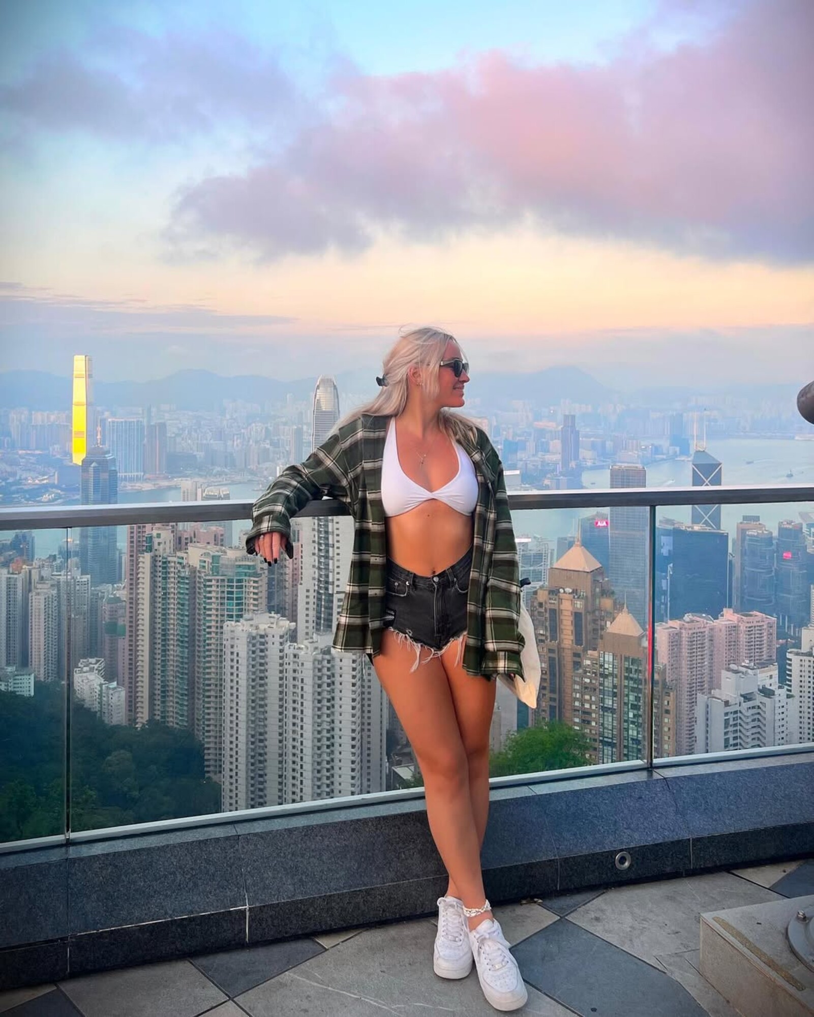 S výhľadom na Hongkong.